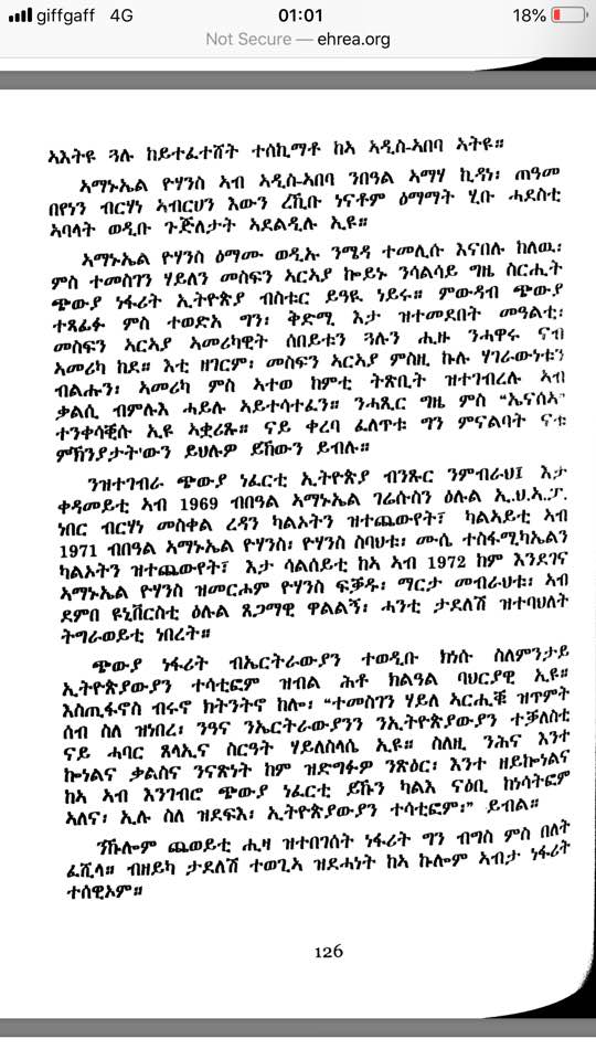 ፍቓዱን ዘገለለ ብሓደ ወገን፡ ንማርታ መብራህቱ ኢትዮጵያዊት መንነት ዘልበሰን ንስለ ናይ ኢትዮጵያ ሰውራዊ ምንቅስቓስ በጃ ከም ዝኾነትን ገይሩ ዝቐረበን በቲ ኻልእ ኮይኑ፡ ሓንጻጽን ወዳብን ዋለልኝ መኰንንን ካልኦት ኢትዮጵያውያንን ምዃኑʼዩ ዝዝንቶ። ብሓጺሩ፡ ኢትዮጵያዊ ታሪኽʼዩ ተባሂሉ። እንተኾነ፡ ብብዙሓት ናይቲ እዋንʼቲ ኣዕሩኽትን መማህርትን፡ ኣማንኤል ዮሃንስ፡ ፈተነ ጭውያ ነፋሪት መገዲ ኣየር ኢትዮጵያ 8 ታሕሳስ 1972 ብኤርትራውያን